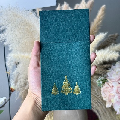 ผ้าเช็ดปากสีแดง เขียว สีทอง และสีขาวยังคงเป็นตัวเลือกคริสต์มาสสุดคลาสสิก การพิมพ์ที่ละเอียดอ่อนหรือส่วนเน้นแบบเมทัลลิกช่วยยกระดับความสวยงามในขณะที่ยังคงความประณีตเอาไว้