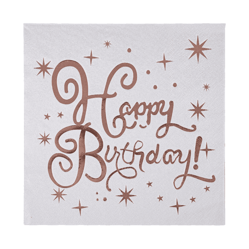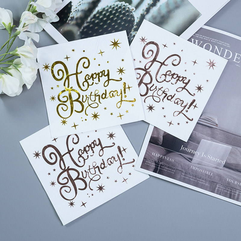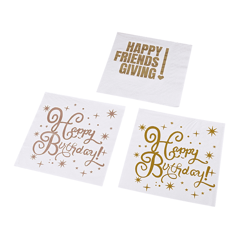 33x33 สุขสันต์วันเกิดค็อกเทลผ้าเช็ดปาก 3 สปอร์ตผ้าเช็ดปากด้วยการปั๊มร้อน SJ3301